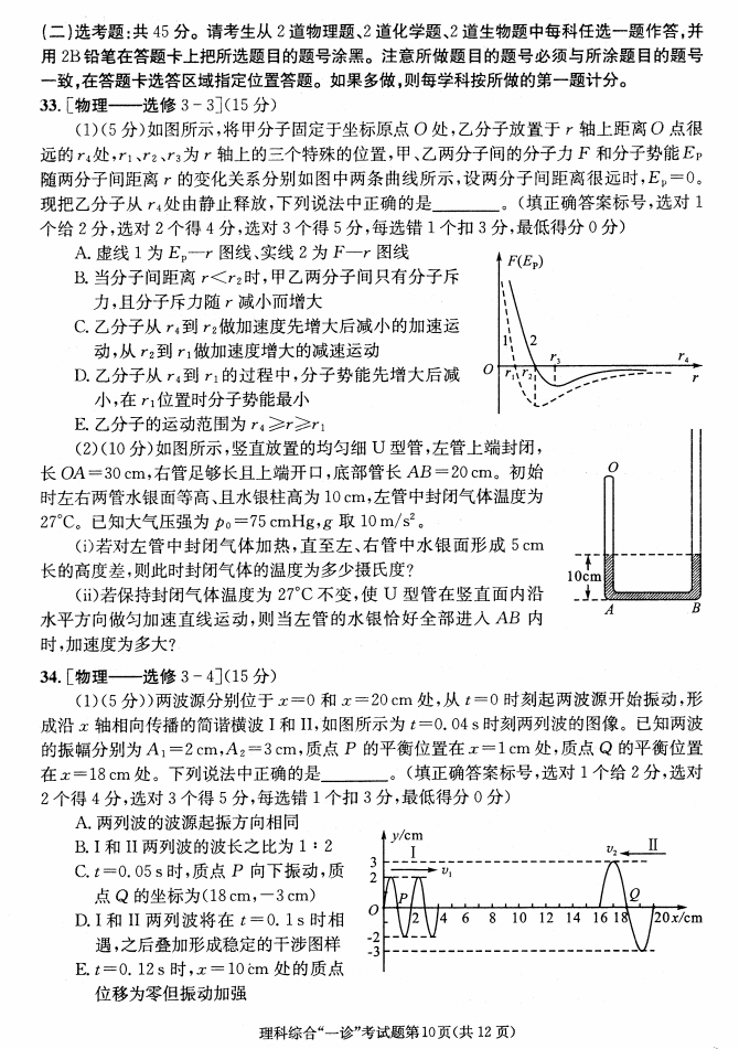 2018成都一诊理科综合试题答案(10)