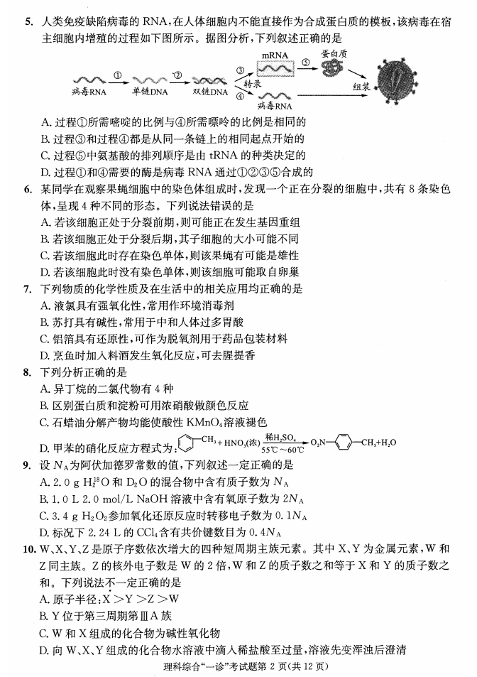 2018成都一诊理科综合试题答案(2)