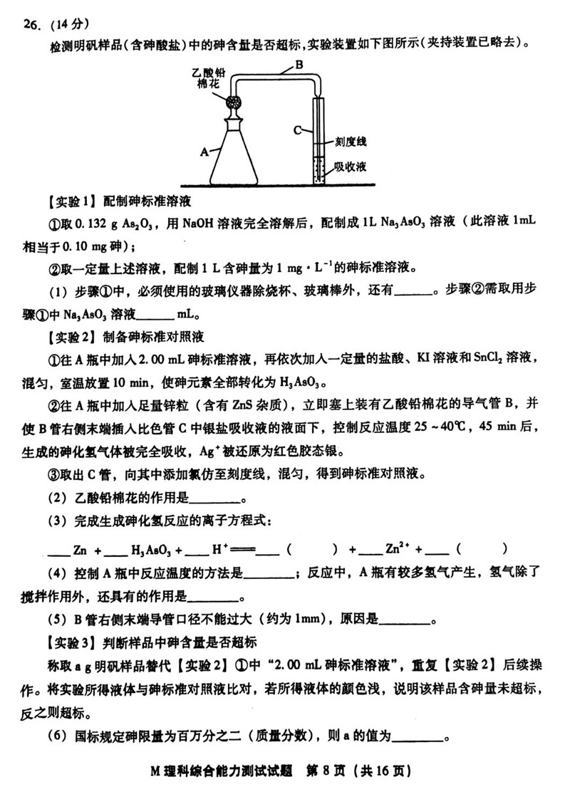 2018年福建省高三质量检查理综试题答案(8)