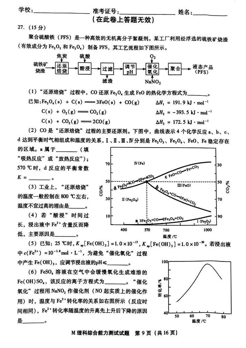 2018年福建省高三质量检查理综试题答案(9)