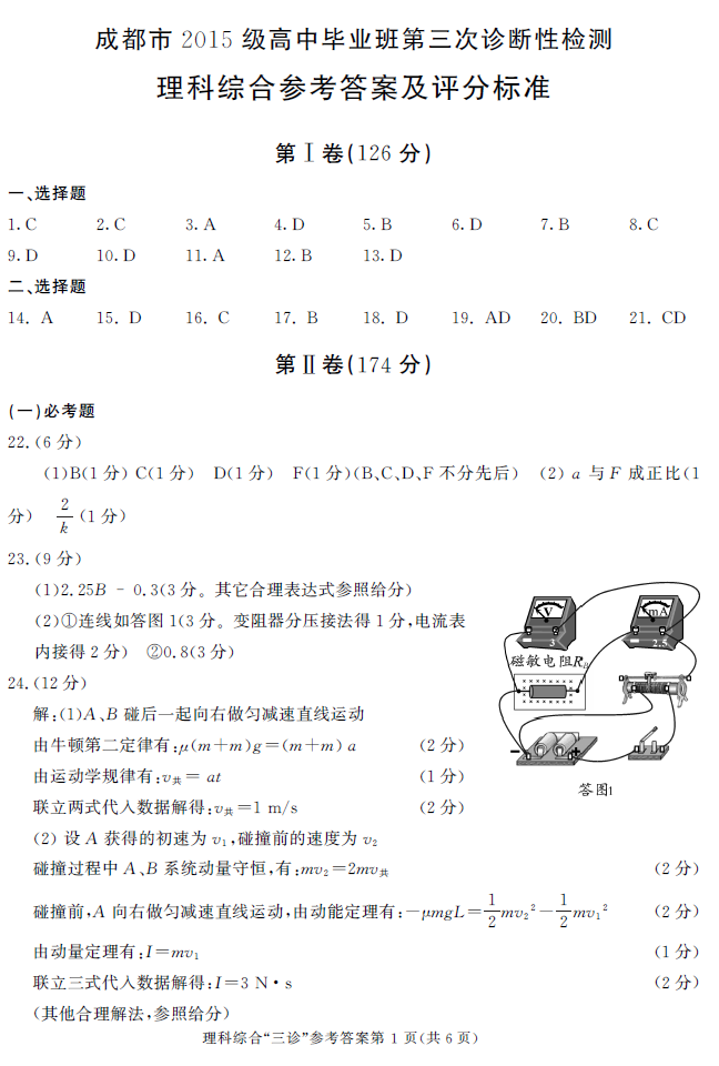 2018年成都三诊理综试题及答案