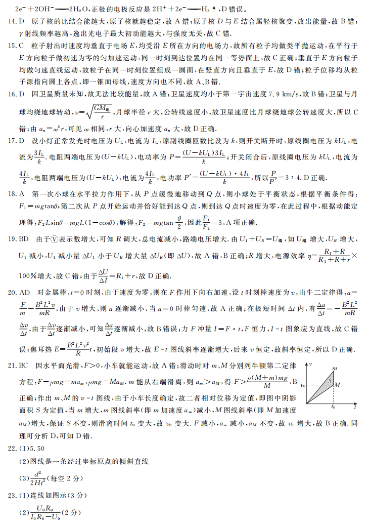 皖南八校2019届高三第二次联考理综试题答案(2)