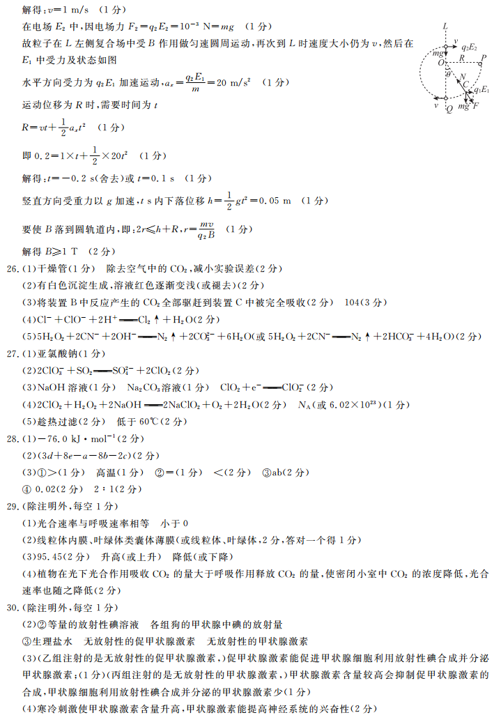 皖南八校2019届高三第二次联考理综试题答案(4)