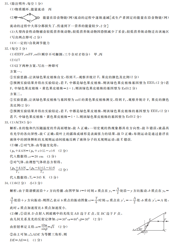 皖南八校2019届高三第二次联考理综试题答案(5)
