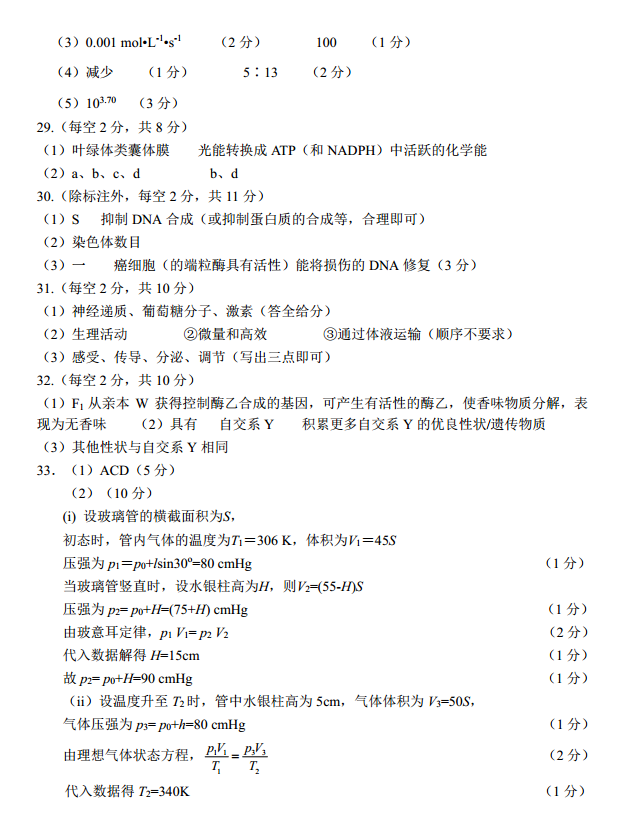 合肥市2019年高三第二次教学质量检测理综试题答案(4)