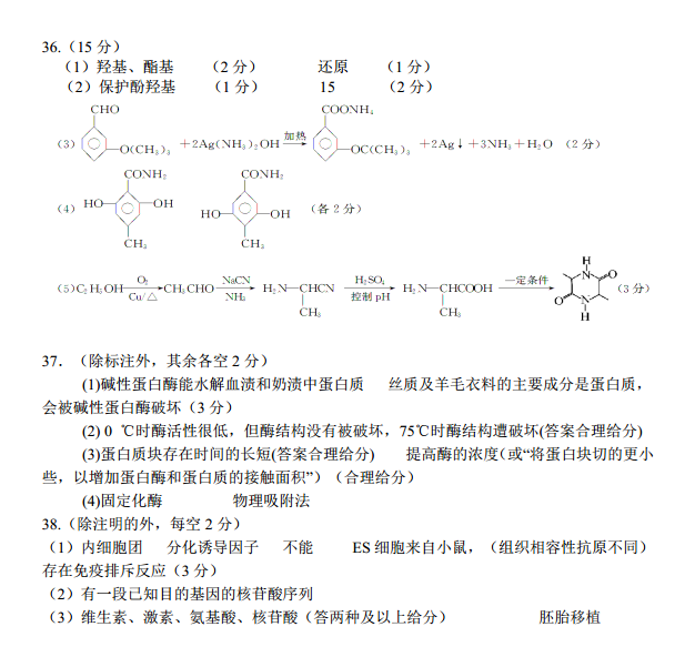 合肥市2019年高三第二次教学质量检测理综试题答案(6)