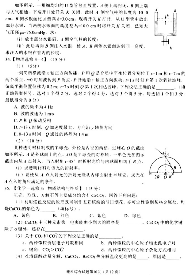绵阳三诊理综试题及答案(10)