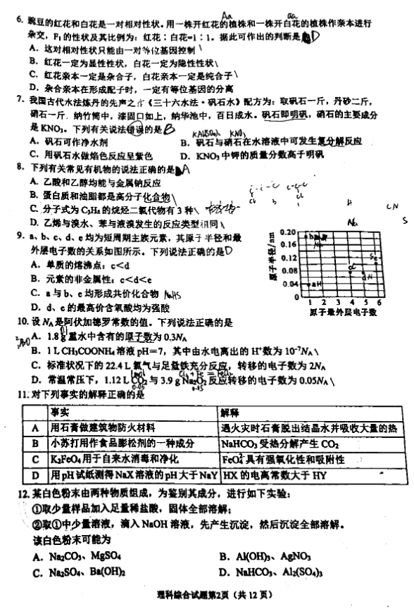 2021年绵阳二诊理综试题及答案(2)