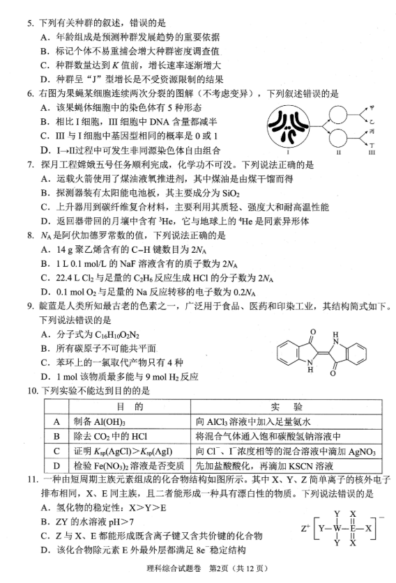 2021年绵阳三诊理综试题及答案(2)