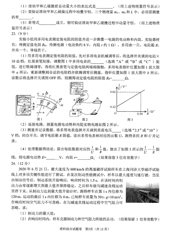 2021年绵阳三诊理综试题及答案(5)