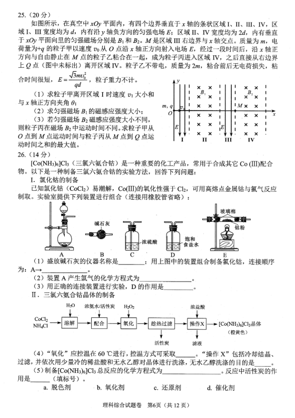2021年绵阳三诊理综试题及答案(6)