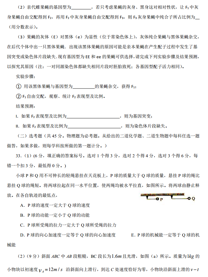 河北徐水2016—2017学年第一学期高三月考二理综试题及答案(12)