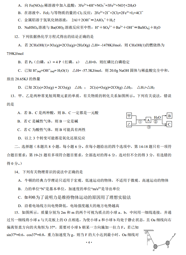 河北徐水2016—2017学年第一学期高三月考二理综试题及答案(4)