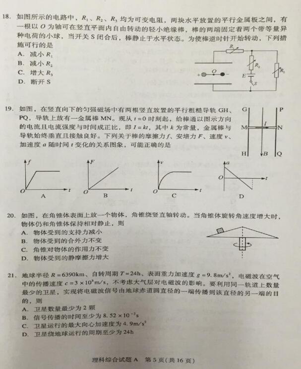 2017年广州一模理综试题及答案 2017广州高三一模理科综合答案(10)