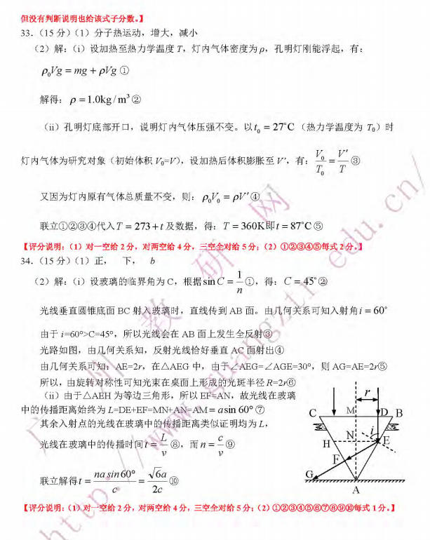 2017年广州一模理综试题及答案 2017广州高三一模理科综合答案(4)