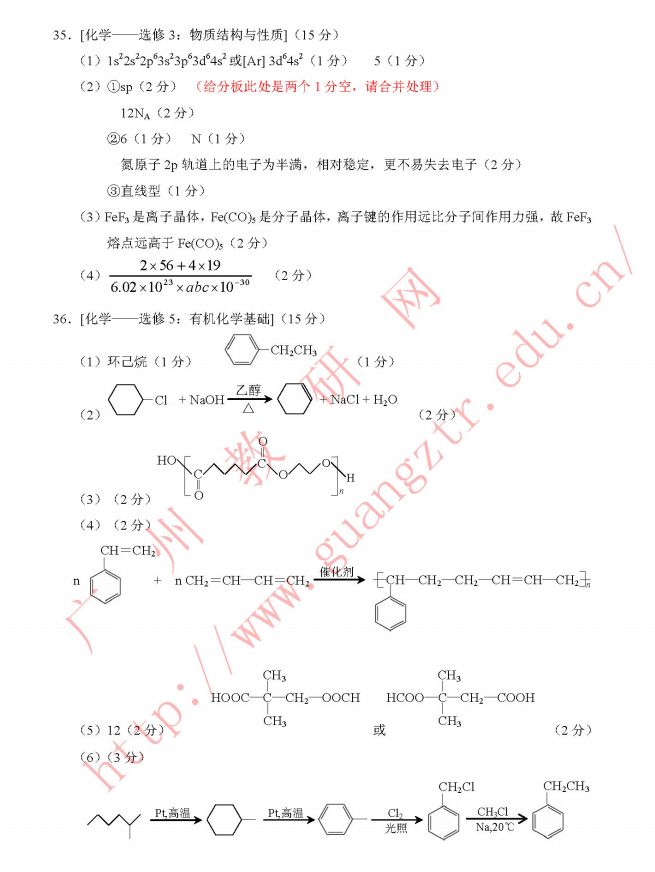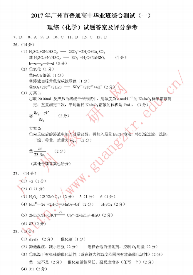 2017年广州一模理综试题及答案 2017广州高三一模理科综合答案(5)