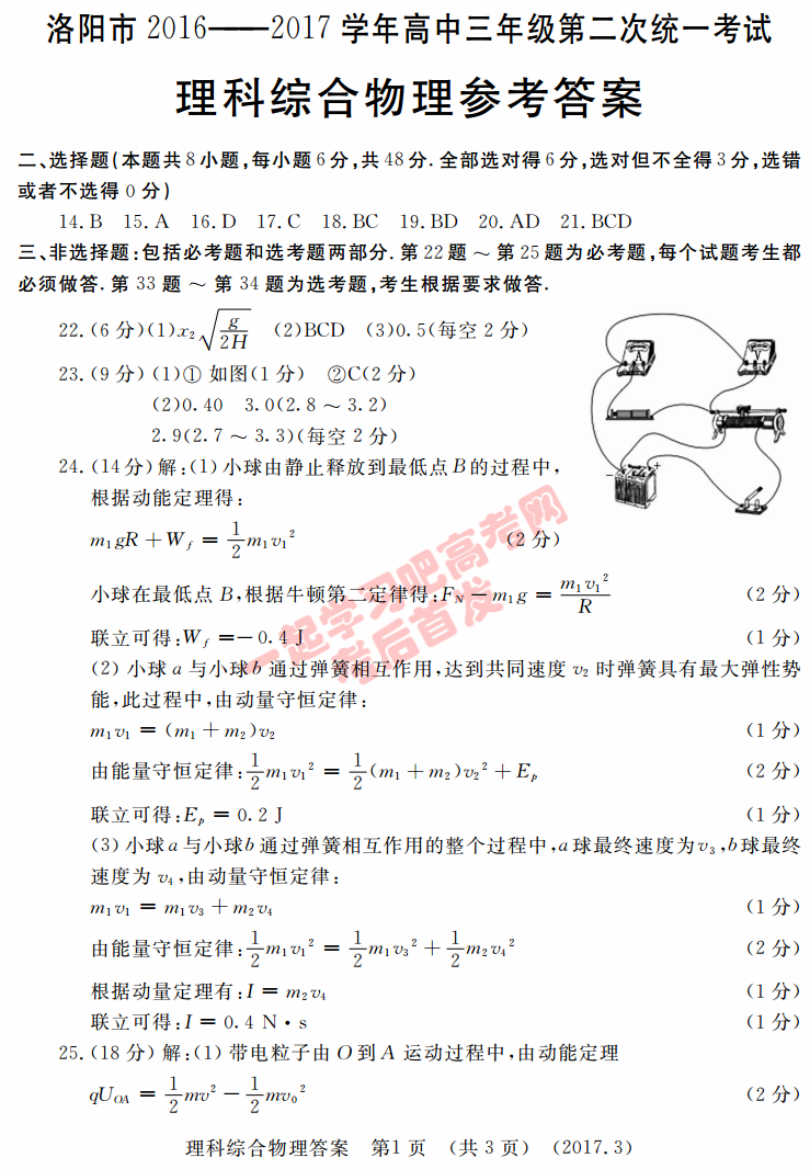 2017年洛阳二练理综答案 2017洛阳二练理科综合试题及答案(2)