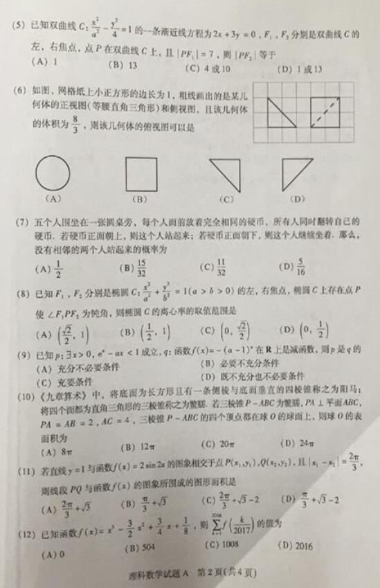 广州市2017届高三下学期第一次模拟考试理科数学试题及答案(2)