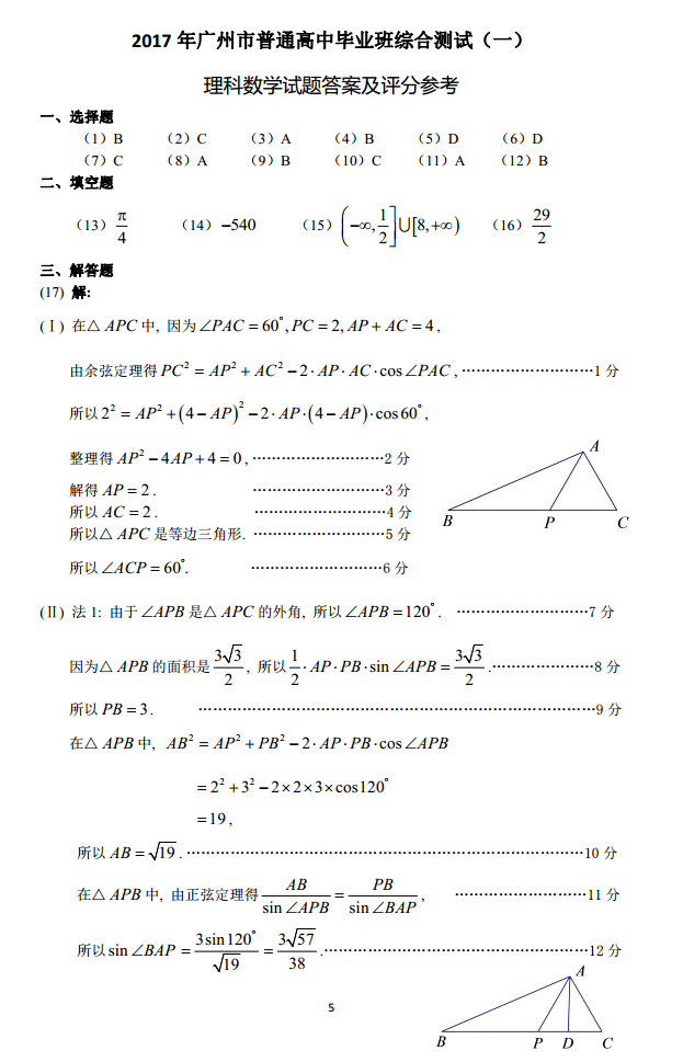 2017广州一模数学 广州毕业班综合测试一理科数学试题及答案(5)