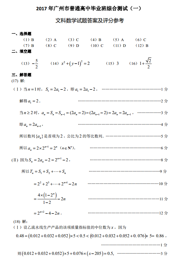 2017广州一模数学 广州毕业班综合测试一文科数学试题及答案(5)
