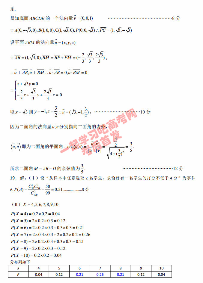 2017邯郸一模理科数学试题答案(2)