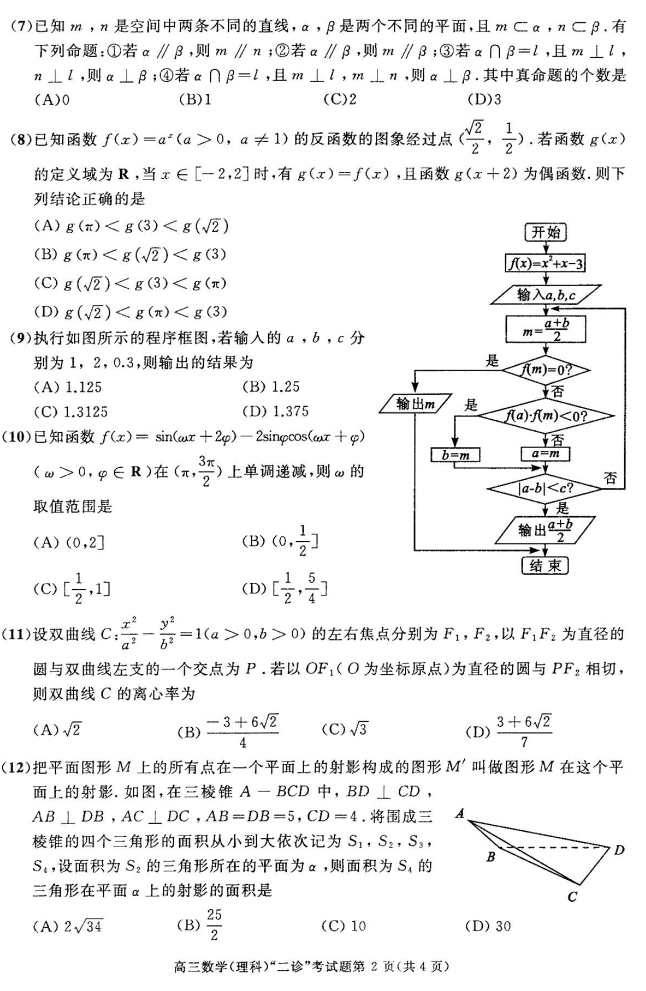 成都市2014级高中毕业班第二次诊断性监测理科数学试题及答案(2)