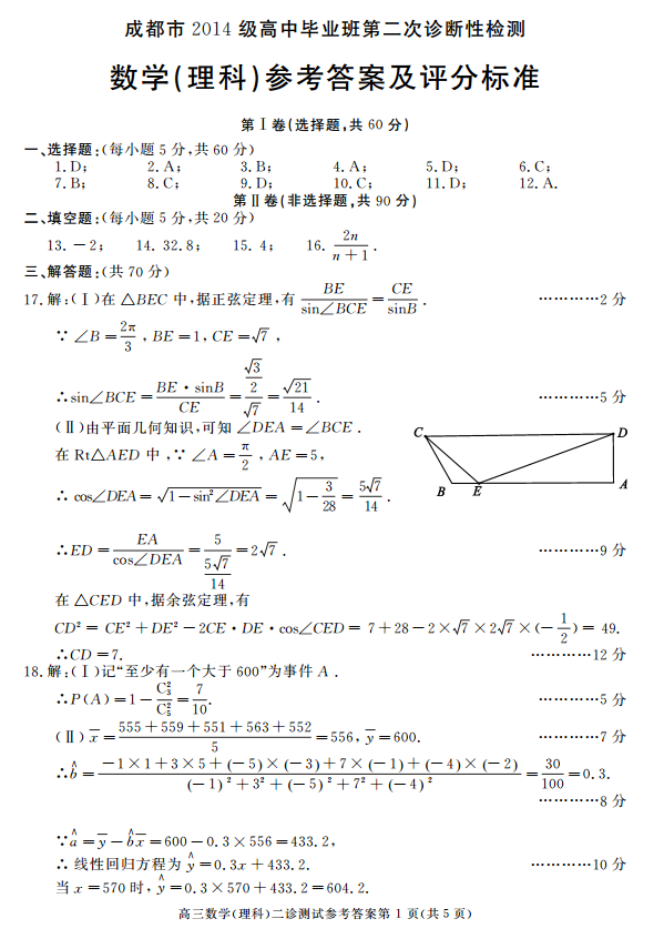 成都市2014级高中毕业班第二次诊断性监测理科数学试题及答案(5)