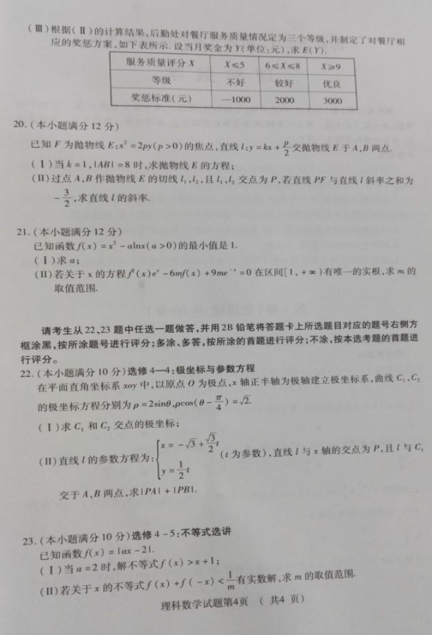 邯郸2017届高三第一次模拟考数学理科试题及答案(4)