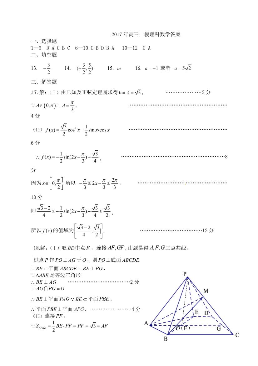 邯郸2017届高三第一次模拟考数学理科试题及答案(5)
