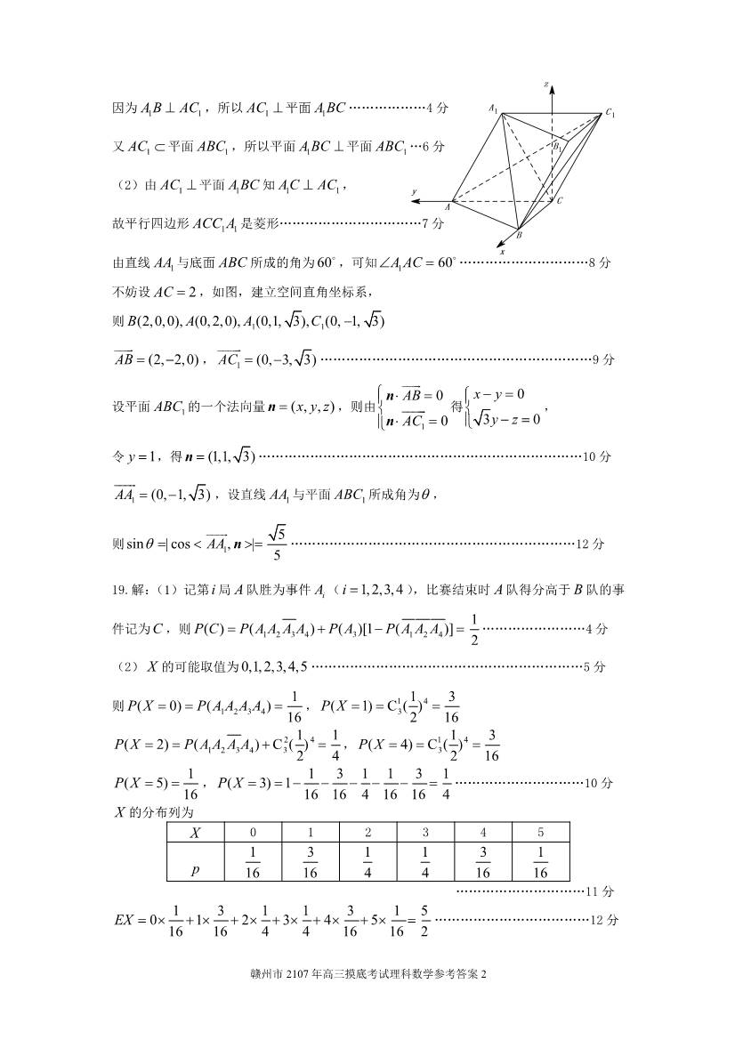2017赣州一模数学 赣州2017届高三第一次模拟数学理科试题(7)