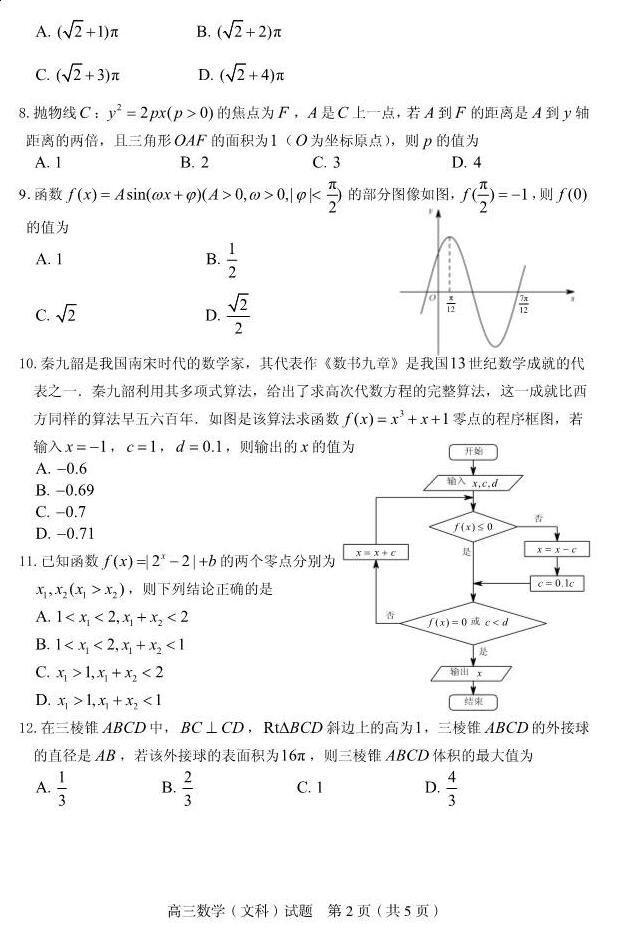 2017赣州一模数学 赣州2017届高三第一次模拟文科数学试题(2)