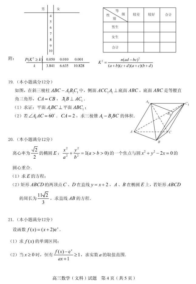 2017赣州一模数学 赣州2017届高三第一次模拟文科数学试题(4)