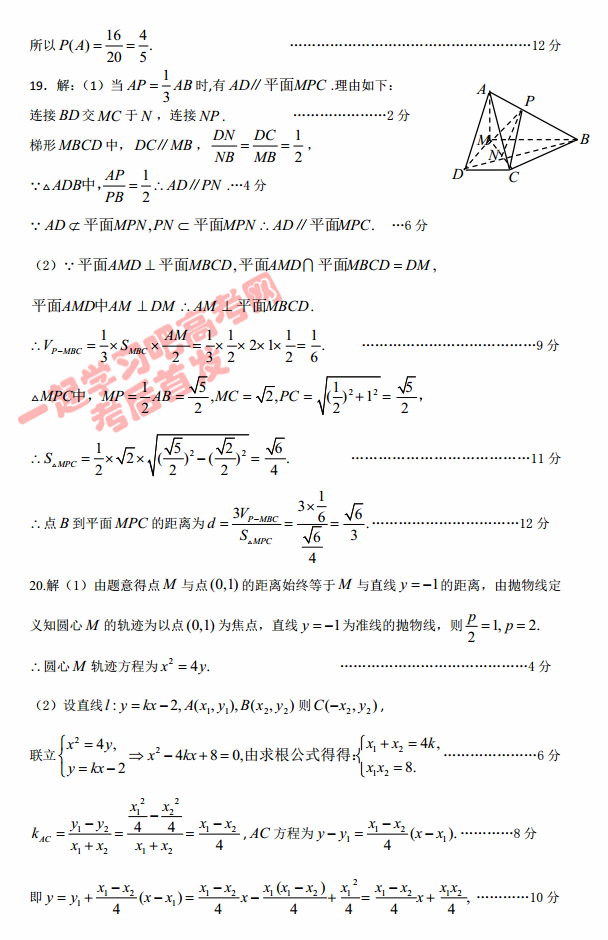 2017郑州二模数学文科答案(2)