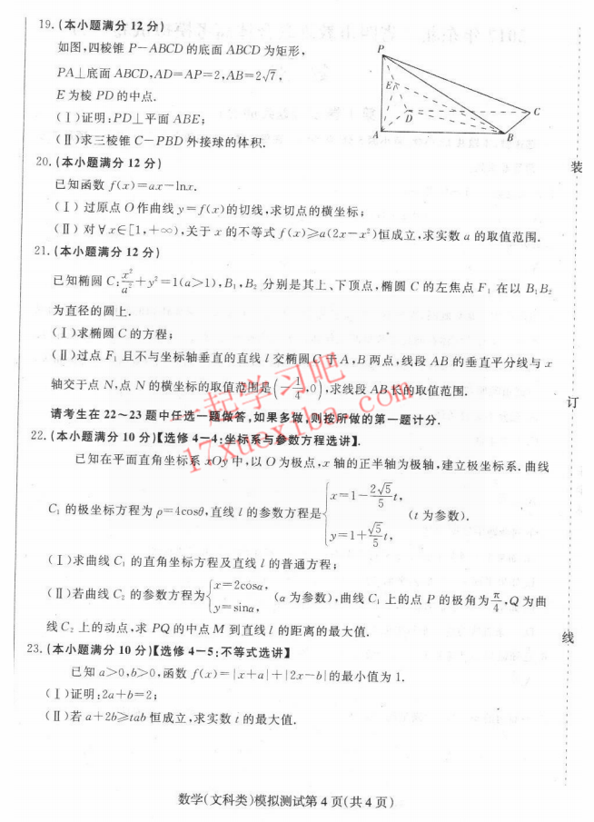 2017年东北三省四市高考第二次模拟考试数学文科试题及答案(4)