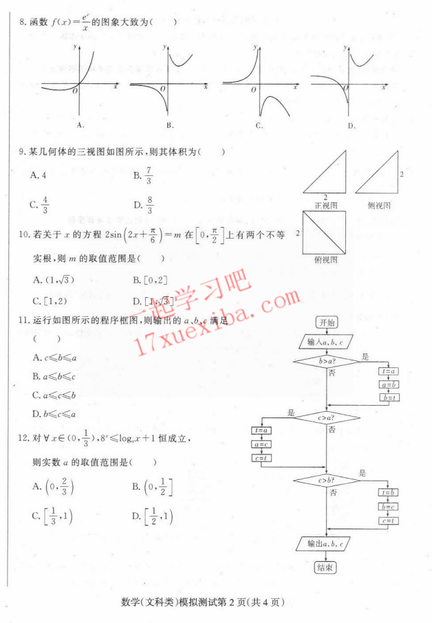 2017东北三省四市二模文科数学试题及答案(2)