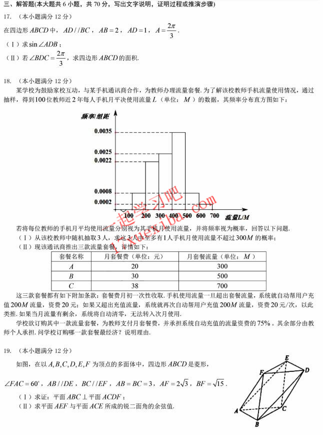 2017年福建省高中毕业班质量检查数学理科试题及答案(3)