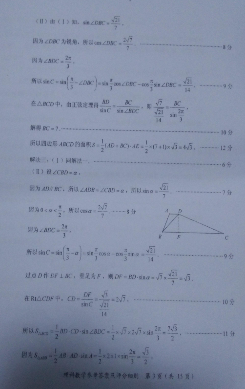 2017年福建省高中毕业班质量检查数学理科试题及答案(7)