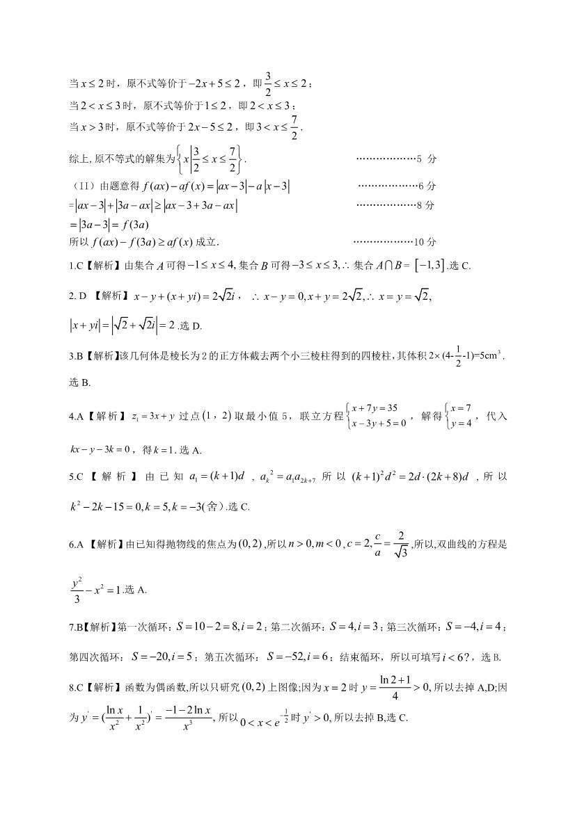 2017湖北六校联合体四月联考数学理科试题及答案(12)