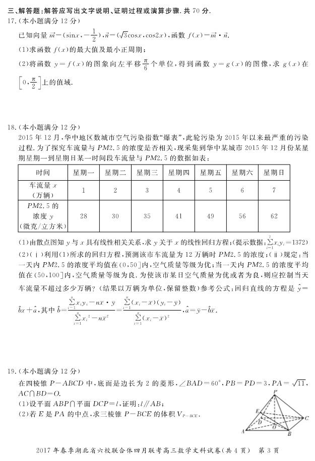 2017湖北六校联合体四月联考数学文科试题及答案(3)