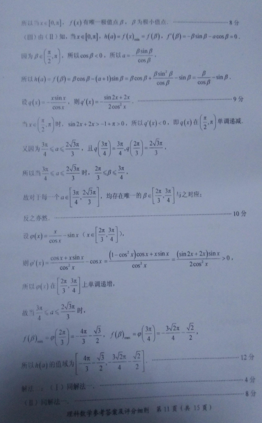 2017年4月福建省高三质量检查数学理科试题答案(15)