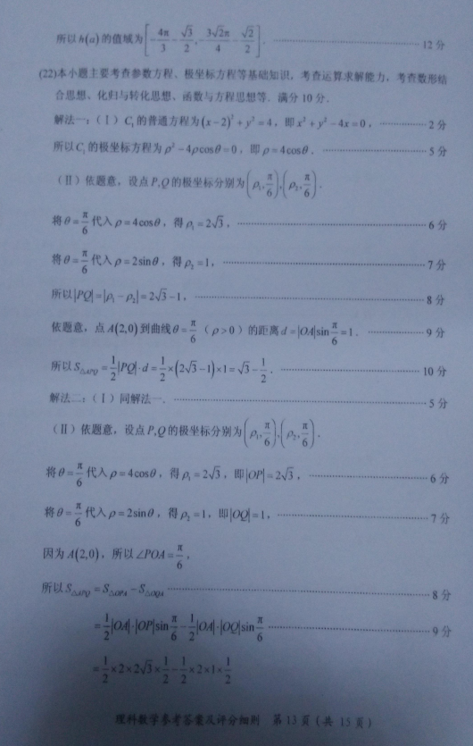 2017年4月福建省高三质量检查数学理科试题答案(17)