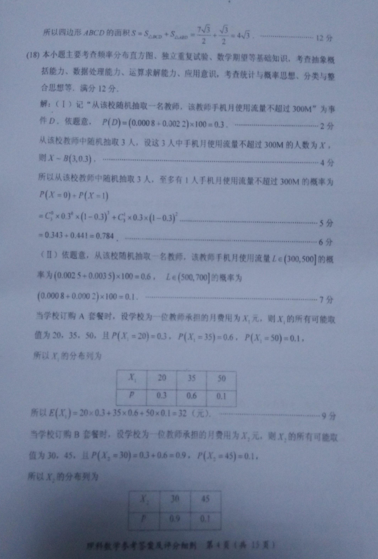 2017年4月福建省高三质量检查数学理科试题答案(8)