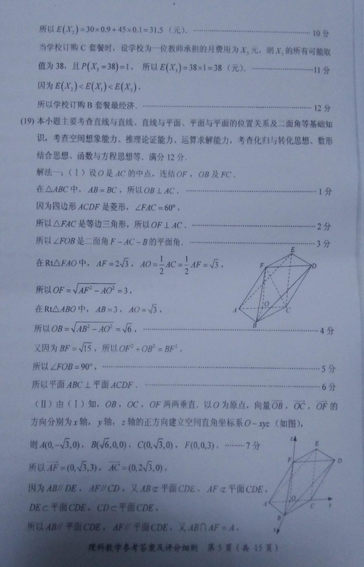 2017年4月福建省高三质量检查数学理科试题答案(9)