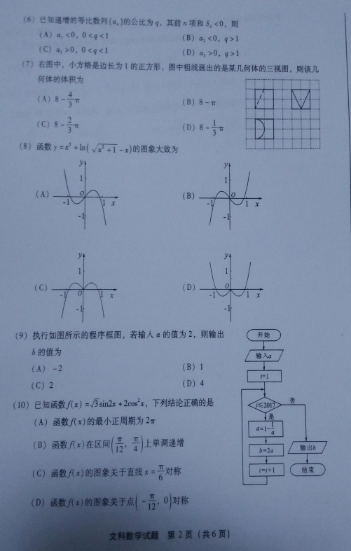 2017年4月福建省高三质量检查数学文科试题答案(2)