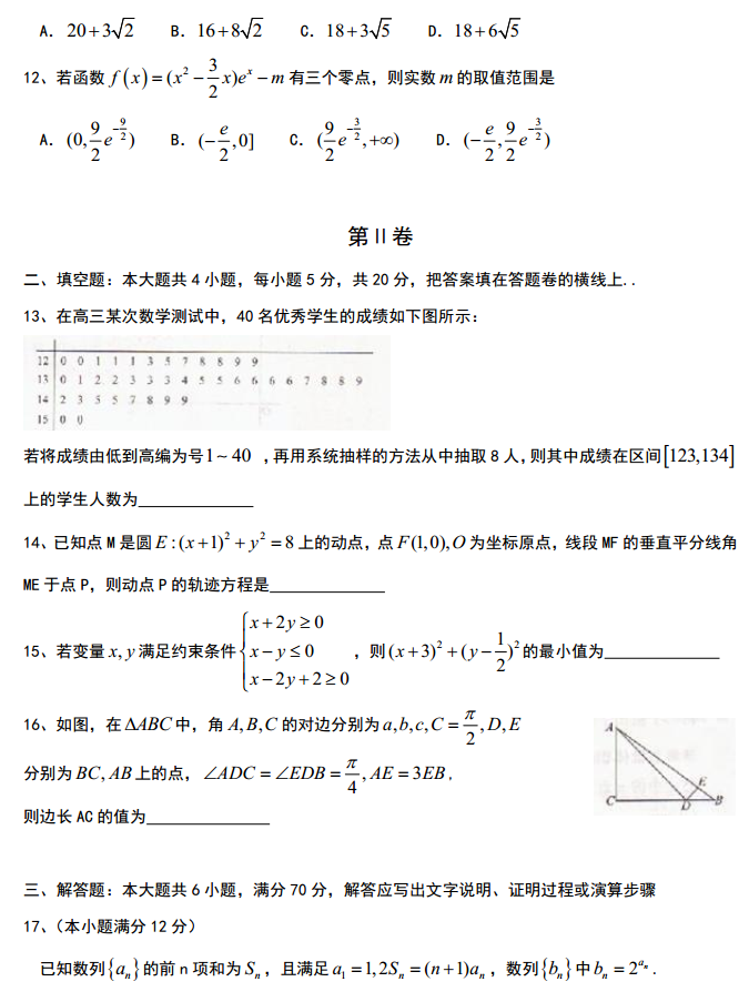 2017河北普通高等学校招生全国统一模拟衡水金卷一数学文科(3)