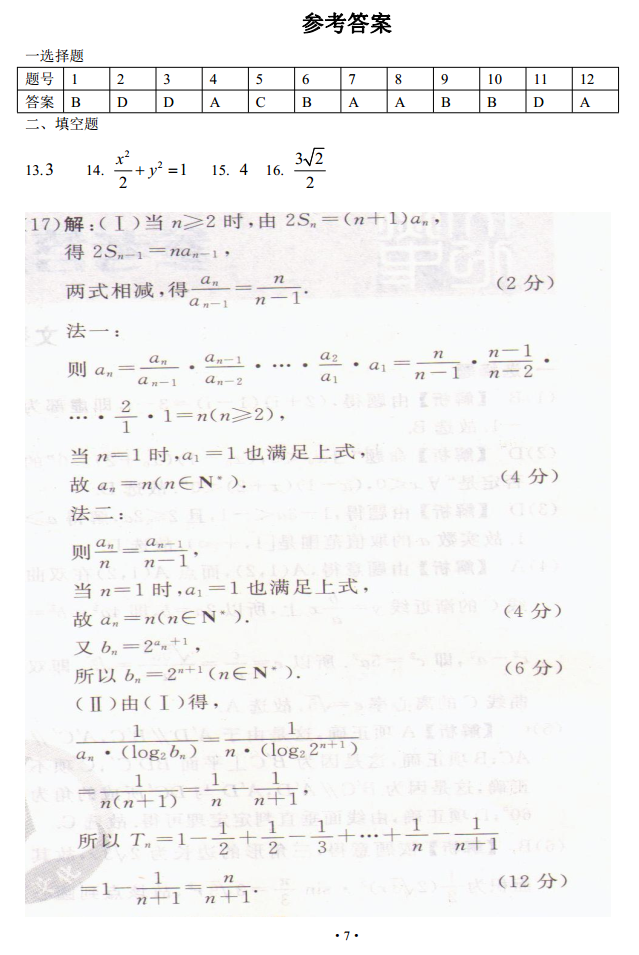2017河北普通高等学校招生全国统一模拟衡水金卷一数学文科(6)