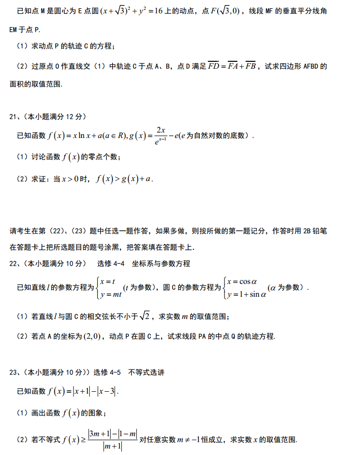 2017河北普通高等学校招生全国统一模拟衡水金卷一数学理科(5)