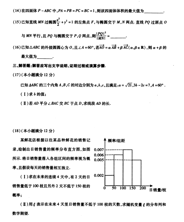 2017年武汉高三4月调研考试数学理科试题及答案(4)