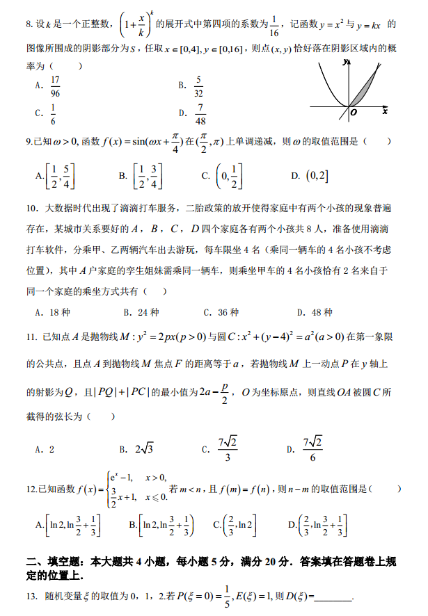 广东汕头金山中学2017届高三下4月模拟考数学理科试题及答案(2)