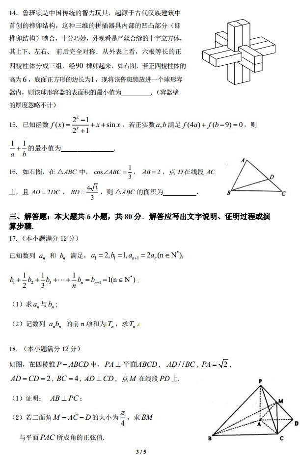 广东汕头金山中学2017届高三下4月模拟考数学理科试题及答案(3)